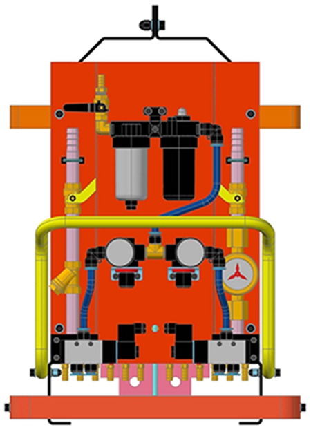 3、焊機(jī)的水氣路系統(tǒng)裝有單拉桿水氣路系統(tǒng)開關(guān),以供隨時隨地更換電極、電纜和焊槍時使用。同時裝有特別制作的水流指示器和用于排污的過濾器,以供隨時觀察水路系統(tǒng)的工作狀態(tài)和及時排污。