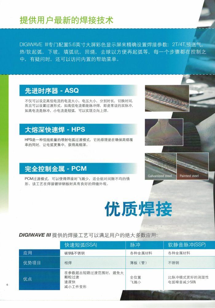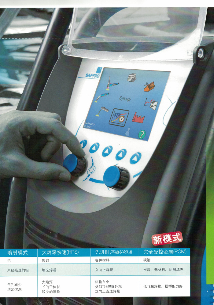 真正實(shí)現(xiàn)一個(gè)脈沖過渡一個(gè)熔滴,該專利工藝采用電弧射流型突變技術(shù),焊接電流以肯定的頻率產(chǎn)生突變,從而引起焊接熔池強(qiáng)烈攪拌,使氫在熔池凝固過程中充分溢出,因此很大地減少和消除氣孔地產(chǎn)生。 SAF 分司的專利射流過渡技術(shù)之于傳統(tǒng)的 MIG 焊射流過渡更具有廣泛的應(yīng)用性,并能實(shí)現(xiàn)全位置的焊接,在汽車、造船、高速列車、航天航空及壓力容器等制造領(lǐng)域得到廣泛應(yīng)用。 SAFMIG330TRI/480TRI 脈沖熔化極氣保護(hù)焊機(jī)為 16 位微處理器閉環(huán)數(shù)字控制晶體管暫斬波電源、焊機(jī)內(nèi)焊接專家系統(tǒng),各種母材,焊絲,氣體組合焊接程序達(dá) 100 多組,協(xié)合式單旋鈕調(diào)節(jié),具有熱起弧功能,此外還設(shè)置了“雙脈沖”功能,適用于鋁及鋁合金,不銹鋼,碳鋼及低合金鋼的焊接。