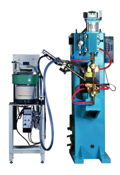 二次側(cè)回路采用加壓氣缸缸座與上機臂絕緣方式,便于在下座直接安裝焊接工裝,不須擔心造成短路,簡單實用。
