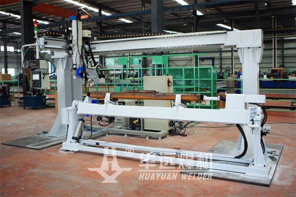 該專機是一臺適用于車載泵橫梁焊接的專用設(shè)備。采用龍門架式懸臂結(jié)構(gòu)+工件變位機布局,布局合理,方便快捷、經(jīng)濟適用。