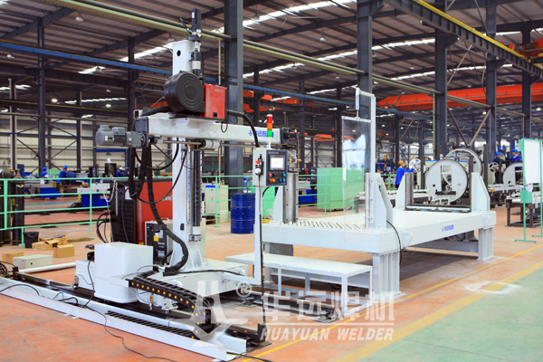 后支腿立焊專機主要由工件支撐架、焊接操作機、跟蹤探頭、焊接電源及檢測、控制系統(tǒng)等部件組成。配置電動行走的精密型焊接操作機,可實現(xiàn)焊槍三軸方向上的調(diào)整。