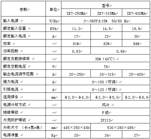 煙臺ZX7-250、315、400MA逆變式直流弧焊機