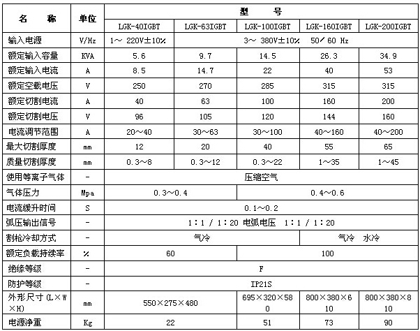 LGK-40、63、100、160機用型等離子切割機