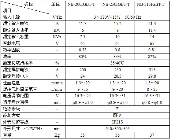金華NB-200/250/315IGBT-T逆變式CO2/MIG/MAG氣體保護(hù)焊機(jī)