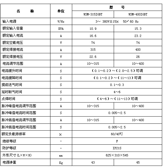 WSM-315、400IGBT逆變式脈沖氬弧焊、手工焊兩用機 主要特點: